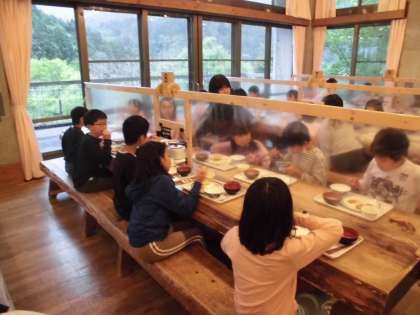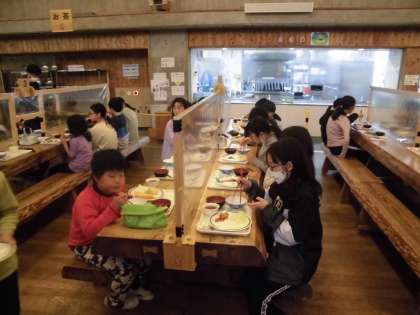 お待ちかねの夕食です。バイキング形式で楽しく、美味しく食べています。