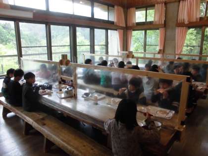 朝食の様子です。しっかり食べて、午前中の活動に備えましょう。