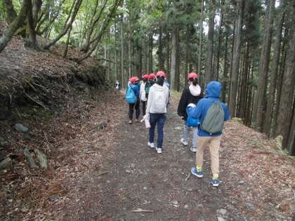 滝谷山登山が終わりました。石がごろごろしていたり、ぬかるんでいて滑りやすかったりと歩きにくいところも多かったですが、頑張っていました。友達どうし励まし合いながら、声をかけ合いながら登山をしました。
