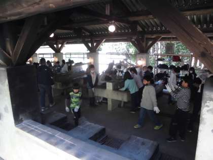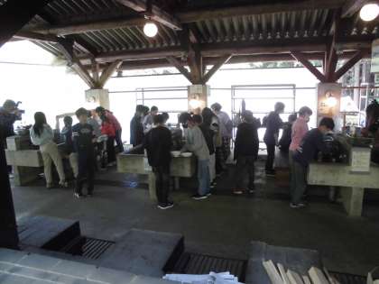 朝食を済ませた子どもたちは、記念撮影をして少しの間、冒険の森でアスレチックをしました。そして、今は、野外炊事に取り組んでいます。山の家の先生のお話を聞いてから、カレーライス作りに取りかかりました。みんなで協力して美味しいカレーを作りましょう。