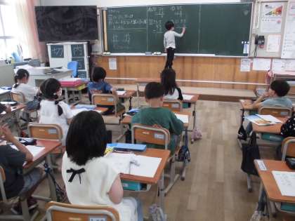 「1くり下げる」など声に出したり、みんなの前で説明したりしながら学習を頑張っています。