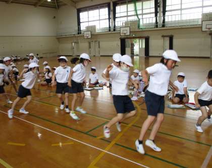 反復横跳び、立ち幅跳び、ソフトボール投げの記録をはかりました。