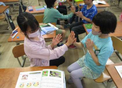 音楽科の学習では、「茶つみ」の歌を歌っています。