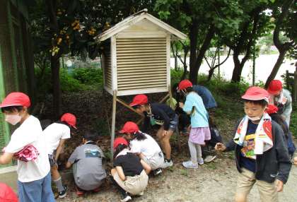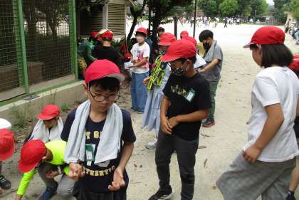 2時間目にごみ0の日の取組で、校内の清掃をしました。3年生は、あかしやの森の近くや果樹園の近くの落ち葉を拾いました。