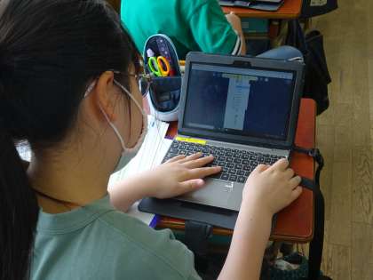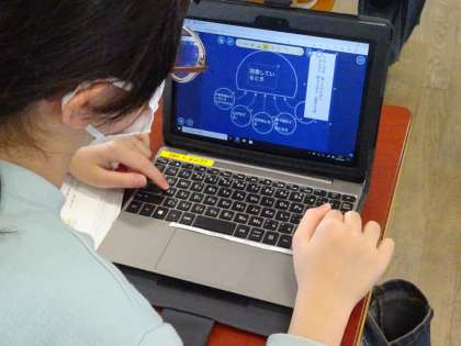 国語の学習で、短歌を作りました。日常の生活の中から楽しい時間を見つけ、五・七・五・七・七の三十一音で表しました。