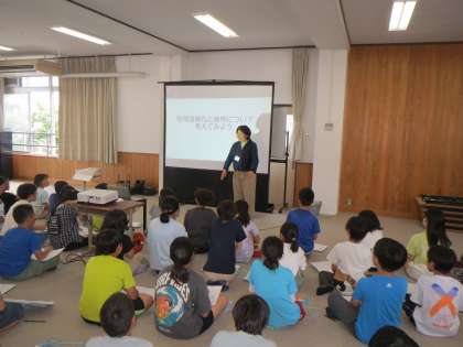 ゲストティーチャーとして気候ネットワークの方に来ていただき、地球温暖化における植物の役割について学習しました。植物の不思議について聞き、とても驚いている様子でした。