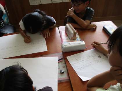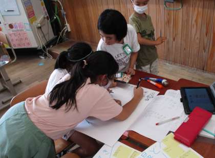 総合的な学習の時間に調べた、“自分たちが増やしたい生き物”について、グループごとに、画用紙にまとめていきました。