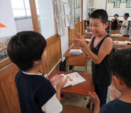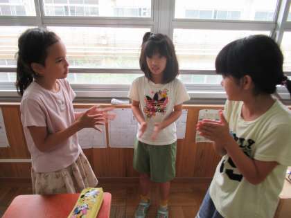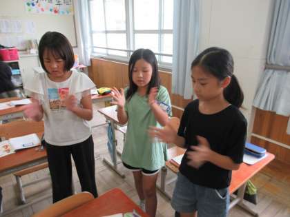 音楽科の学習では、グループになって一人一人違うリズムを打ち、音楽に合わせて重ねる活動をしました。お互いの音をよく聞いて、リズムよく合わせることができていました。音楽の学習が終わってからも、「あの曲かけてほしい!」とリクエストされるくらい、夢中になって取り組んでいました。