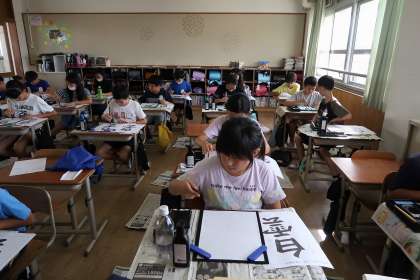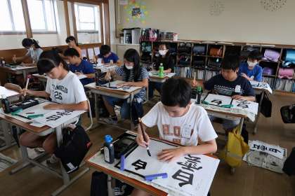 子どもたちは、手本を見ながら丁寧に書くことができました。