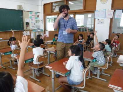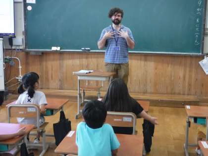 1組では、初めて英語活動を行いました。まずは、ジョーイ先生の自己紹介を聞き、カリフォルニアのことに興味津々!たくさん知りたいことが出てきて、ジョーイ先生にたくさん質問をしました。その後は、英語でじゃんけんをして楽しみました。これから、たくさん英語に親しんでいきたいと思っています。