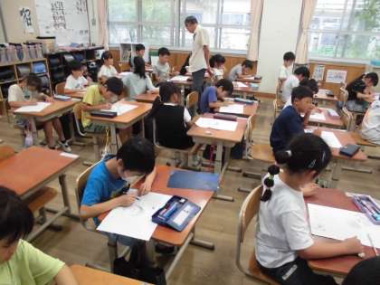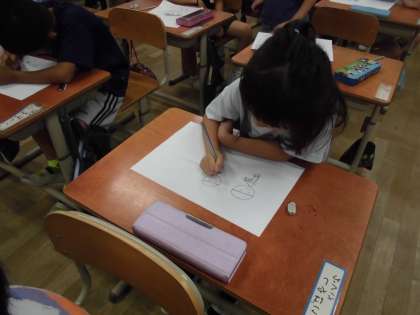 図画工作「ことばのかたち」ではお話の絵に取り組んでいます。今日はどの場面を書きたいか考えて下書きをしました。