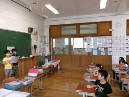 2学期からは、日直のスピーチも始まりました。休みの日や学校での出来事を話し、みんなで質問をしました。