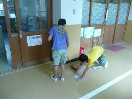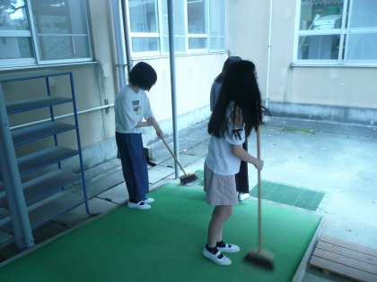 本日は、自由参観に多数ご来校いただきまして、ありがとうございました。夏休み明けの子どもたちの頑張っている様子をご覧いただけたのではないかと思います。2学期より2足制になり、活動しやすい教室となりました。子どもたちも、できる限り砂が上がらないように一生懸命に掃除をしています。本日の参観では、保護者の皆様にも上履きをご用意いただきました。靴箱が校舎内にあるため、保護者の方と上靴ゾーンが若干違いますが、校舎入口での履き替えにご協力いただきまして、本当にありがとうございました。