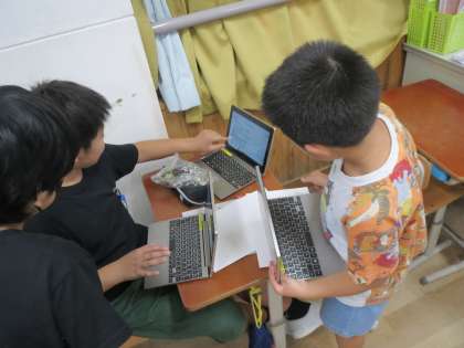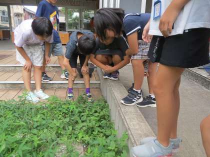植物パワーを活かすために、いのちの庭や学習園に行って、活用することのできる植物を探しに行ったり、インターネットを使って調べたりしています。