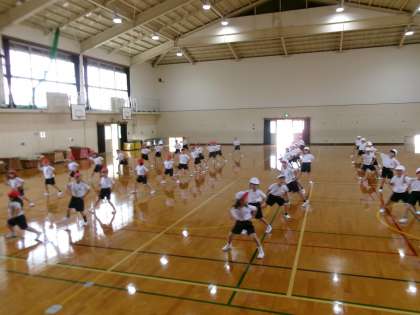 今日は、体育科参観に向けて練習しているダンスを初めて体育館で踊りました。
