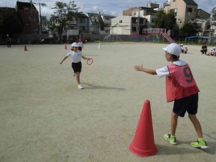 今日は1時間目にリレーの練習をしました。
