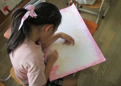 お話に登場する人や動物、植物の絵をコンテで画用紙に描いていきました。丁寧に描くことができまました。
