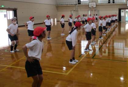 体育科の学習では、体育科参観の練習をしています。