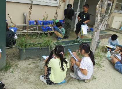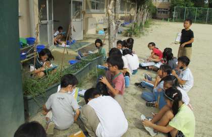 理科の学習で、ホセンカとヒマワリの観察をしました。花が咲き終わった後、植物がどのように変化するのかを観察しました。