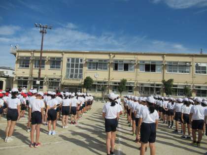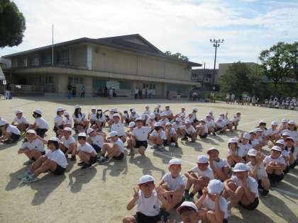 これから始まる体育参観にドキドキわくわくしている子どもたちの様子です。校長先生の話を聞く時も背筋を伸ばし、良い緊張感をもって臨むことができていました。