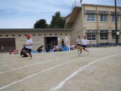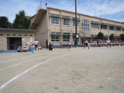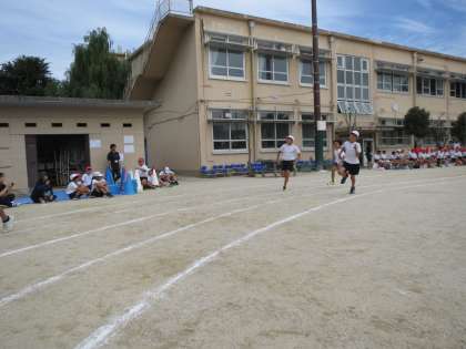80m走を全力で走りました。3年生と同じ距離ですが、体も大きくなり、走るスピードも速くなりました。たくさんの応援ありがとうございました。