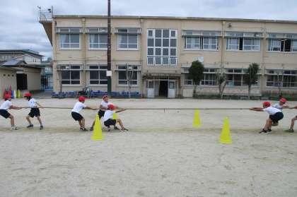 3時間目に、綱引きをしました。5年生の体育科参観の綱引きを見て、自分たちも挑戦したくなったようです。かけ声をかけて、楽しく取り組んでいました。