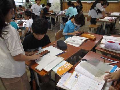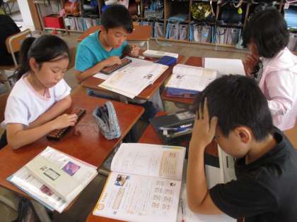 3年生の時にも学習していたのですが、使い方を忘れている児童がたくさんいました。そろばんを使って計算を友達と一緒に考え合いながら学習を進めました。