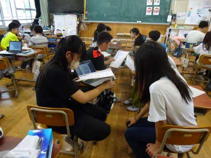 夏休みの出来事を紹介するための発表準備をしました。写真を用いて分かりやすくするためにスライドを作ったり、相手を意識して目を見て話すことを意識したりしていました。