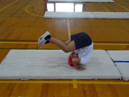 マット運動の学習が始まりました。どのような技ができるのかをやってみて、ねらい1やねらい2でどのような技に取り組んでいくのかを確認しました。