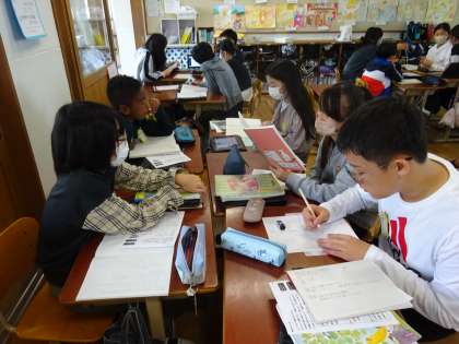 1年生ともっと仲良くなるために、どんな遊びをするとよいか、グループごとに話し合いました。意見を広げる話し合いでは、相手の思いをしっかり知るために、疑問に思ったことは積極的に質問していました。