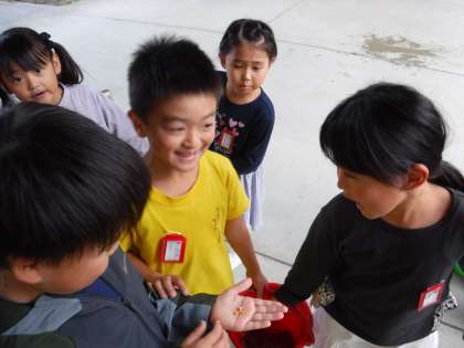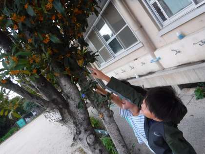 「あ、いいにおい!」教室に入ると、運動場からとてもよい香りがしてきました。「金木犀の香りや!」「秋やね〜。」と、話をしながらうっとりと香りに浸っていました。