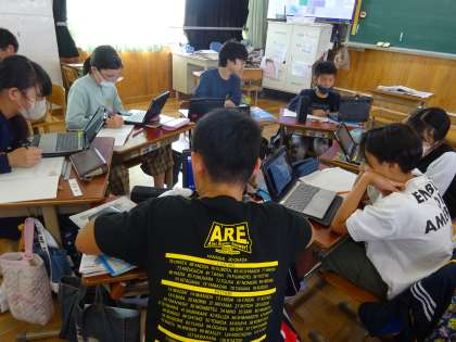 織田信長、豊臣秀吉がどのようなことをして天下統一をしていったのかについて、調べたことをグループごとに交流しました。分からないことなどをお互い質問しあい、子ども同士で学びを深めていました。