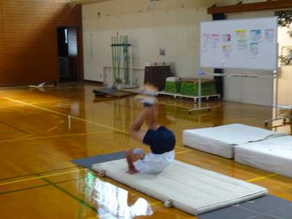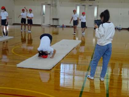 マット運動では、動画を撮って自分の動きを確認したり、技にあった場を作って練習したりしています。自分のことだけでなく、練習している友達ができるようになると、一緒になって喜ぶ姿も見れました。