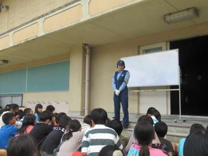 最初と最後には、警察の方から自転車の安全に関するお話をしていただきました。小学生でも、自転車に乗っているときに重大な事故を起こしてしまった事例があったことを教えていただき、どの子も自分事として真剣な表情で聞くことができていました。