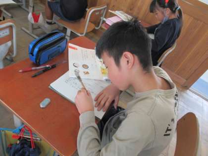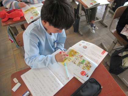今日の国語科の学習では、漢字の広場に取り組みました。教科書に載っている漢字をなるべくたくさん使い、主語と述語を大切にしながら文作りをしました。