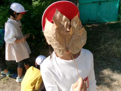 「葉っぱの色が茶色くなってきている。」「カサカサと音がするね。」「キンモクセイがとてもいい匂いだよ。」とたくさんのことを見つけていました。