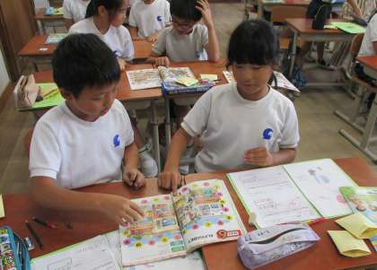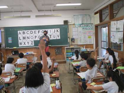 英語の学習では、ジョーイ先生が来てくださって、アルファベットの発音の仕方を教えてくださいました。