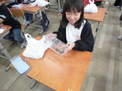 今日の図画工作科の学習では「音づくりフレンズ」をしました。たたいたり、ふったり、はじいたりするとどんな音が鳴るのかいろいろ試しました。先日の校外学習で集めたどんぐりなども使ってみました。来週、どんな作品が出来上がるか、楽しみです。