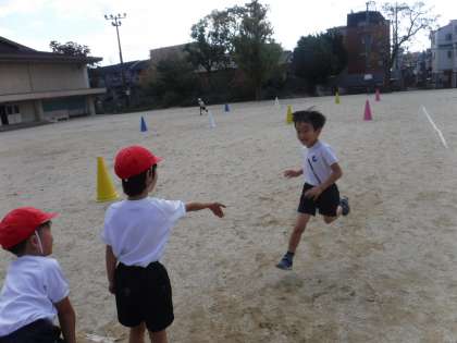 今日から、体育科ではリレーあそびが始まりました。くねくねリレーやぐるぐるリレーといったコーンを回るリレーをしました。初めてにも関わらず、しっかりルールを理解して、リレーを楽しむことができました。次は、チームがもっと早くゴールするために、コーンをどのように回ったらいいかなどを話し合っていきたいと思います。