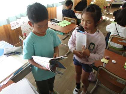 アルフェベットの大文字を、自分たちで仲間分けをしました。