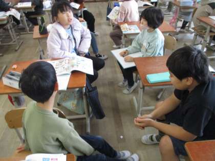 道徳科の学習で、友達との約束を「ダブルブッキング」してしまったとき、どうするかをグループで話し合いました。