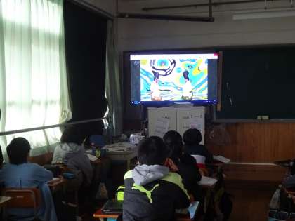 狂言や能など、社会でも学習した昔の文化について、国語でも学習しました。狂言・能・歌舞伎・人形浄瑠璃などがどのようなものか、動画を見て確認しました。