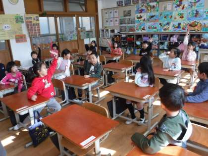 クイズ係さんが、中間休みにクイズを出してくれました。「世界一長いトンネルは、どこからどこまで?」なかなかとんちの利いた問題です。みんな知恵を絞って考えます。正解すると、みんな大喜びでした。おかげで笑顔いっぱいの楽しい中間休みになりました。