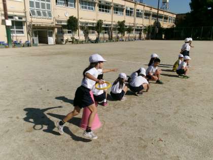 体育科で、リレーあそびを楽しんでいます。
