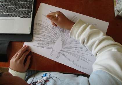 今日は、どんな版を作るかタブレットで調べながら下描きをしました。