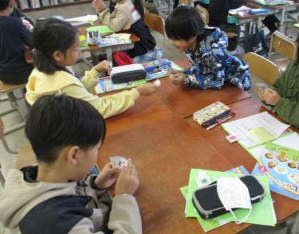 今日は、“What do you want?”を使って、友達とカードを交換するゲームをしました。