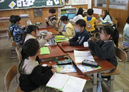 英語の学習では、英語で色や形を表現する方法を学習しています。