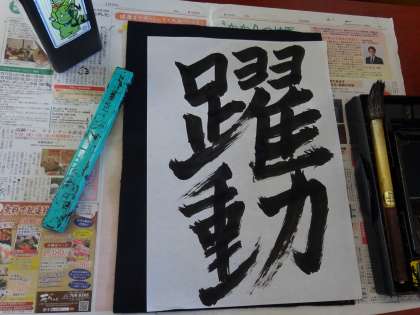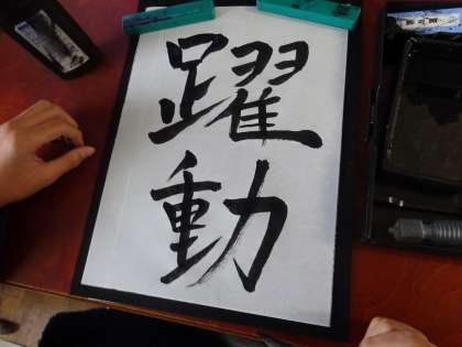 卒業アルバムの題字を書きました。学年目標の「躍動」のいう文字を、一人一人思いを込めて毛筆で書きました。誰の文字が選ばれるのか楽しみです。