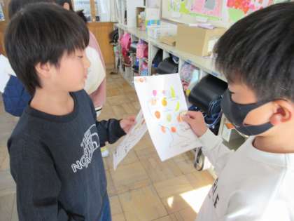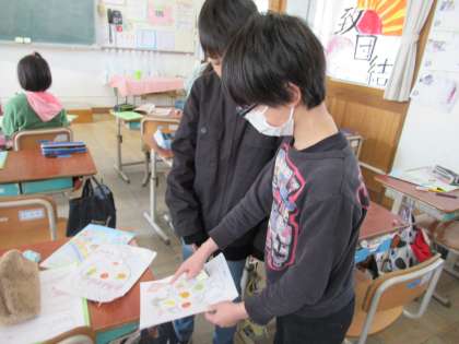 外国語の学習では、ほしいフルーツを選び、自分のパフェを作って友達に紹介する活動をしました。とっておきのパフェを、フルーツや数字を英語で表現しながら、上手に紹介することができました。また、聞いた相手もしっかりリアクションを取っていました。