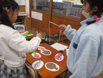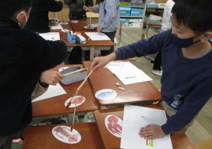 理科の時間に、磁石のついた竿を作って、魚釣りをしました。